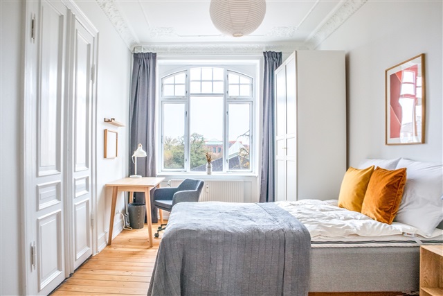 Fully modernised in 2022 this beautiful apartment has maintained several classic features like high ceiling, lovely stucco and some walls with the original high wooden panels.The apartment holds 4 bedrooms, a lovely dining kitchen, a large living room with unspoiled views over the well known Aksel Møllers Have and a beautiful bathroom with seperate shower niche and washer/dryer.