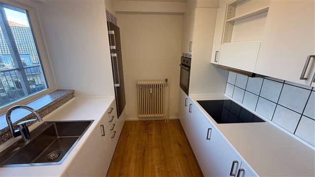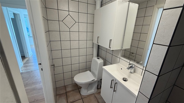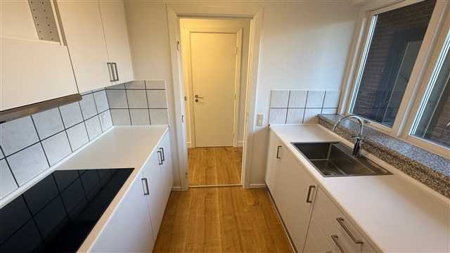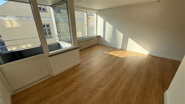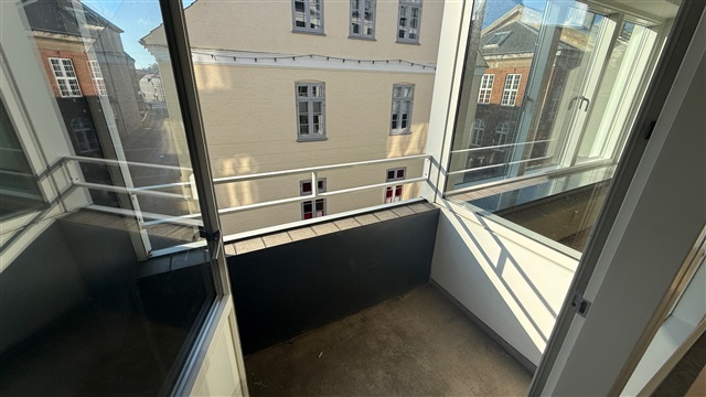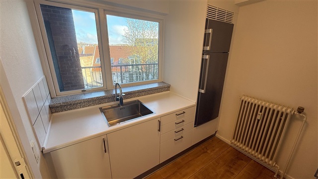 A loan option is available for the deposit.This apartment features a small balcony facing south and is situated in the heart of Kolding City. Its location offers close proximity to the pedestrian street, Koldinghus, and the university. The layout includes an entrance hall, kitchen, a walk-in closet equipped with a combined washer and dryer, a bathroom with underfloor heating, and a living room area that opens onto the south-facing balcony. Additional amenities include a shared laundry basement, an elevator, and a bike shed.