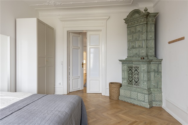 The apartment consists of 6 single rooms and 1 couples room, 2 bathrooms, 1 kitchen and 1 living room in the center of the apartment. The apartment is located on top floor and has easy access to the large and beatiful rooftop terrace with 360 degrees view over Copenhagen. The building is from 1894 and has kept the charm of the old days. Fx. you will find an old fireplace, wooden floors and stuccoed ceilings.