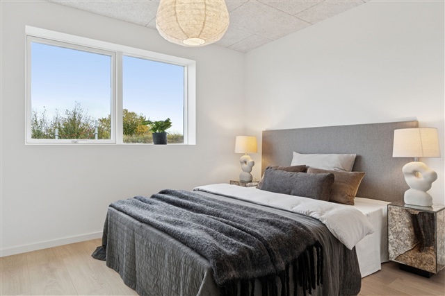 The upper floor primarily serves as the sleeping quarters, comprising a spacious master bedroom fitted with built-in wardrobes as well as three additional rooms suitable for children, a home office, or guests. A landing with a skylight connects all the bedrooms, enhancing the flow and providing extra daylight.