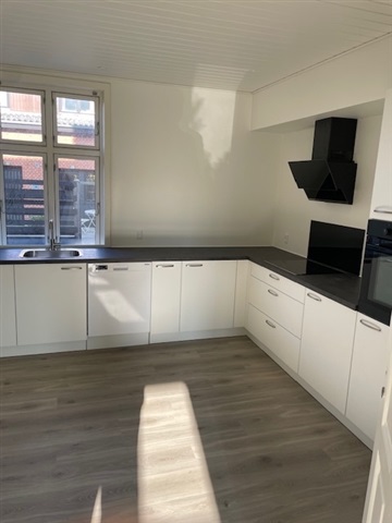 Lovely, spacious and newly furnished apartment, centrally located in Præstø within walking distance of several supermarkets, the town's main street and the cozy harbor at Præstø fjord.The rental includes on the ground floor a nice large entrance hall with open staircase to the 1st floor, toilet, 2 rooms with high ceilings and new floors, as well as a large eat-in kitchen with kitchen elements from Vordingborg Køkken and white goods. On the 1st floor are 2 spacious rooms and a bathroom.