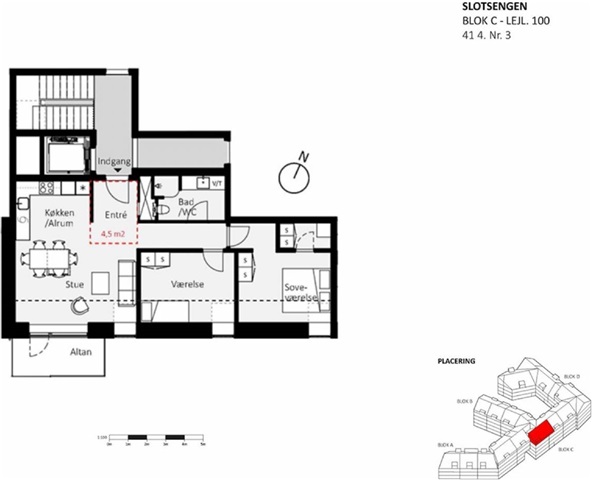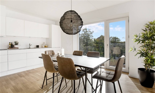 Situated in a remarkable development, this location provides easy reach to everything Hillerød offers. With Frederiksborg Castle just around the corner, residents can immerse themselves in a captivating environment that includes the Castle Lake and Castle Garden. The bustling Hillerød pedestrian street and the Slotsarkaderne shopping and dining area are within a short walking distance, ensuring all essential amenities are close at hand. Living in Slotsengen also means having Streetfood Hillerød, a gently flowing stream, and private green allotment gardens-where legumes and chili peppers are cultivated during the summer months-just a few meters from the building, making these features part of everyday life.