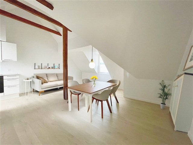 Located at Sct. Mogens Gade 69, this delightful two-room apartment combines central city living with a blend of character and contemporary amenities. The interior features charming exposed beams that add warmth and personality to the space, creating a cozy atmosphere throughout the two rooms.The apartment is equipped with a newer kitchen boasting ample cupboard space, enhancing functionality for daily use. A modern bathroom complements the living area, ensuring comfort and style. One of the highlights is the balcony, which offers stunning views over the nearby lake, providing a peaceful outlook amidst the urban surroundings.