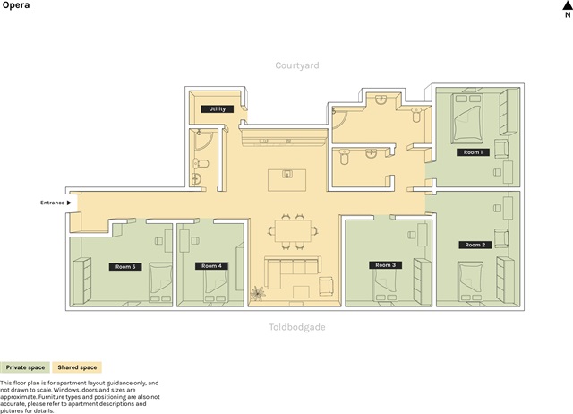 Featuring beautiful exposed wooden ceiling beams and breathtaking views, this fifth-floor apartment-known as Opera-exudes a sense of coziness. Nearly every window includes built-in seating, allowing natural light to flood the space from all angles. Constructed in 1894, the residence is ideally situated just a short walk from Amalienborg Palace and directly opposite the harbor from Copenhagen's renowned Opera House, placing you at the heart of Danish urban living. This five-room home offers generously sized, comfortable rooms throughout. The two rear bedrooms, designed for couples, provide a private and intimate atmosphere complete with direct access to the larger of the two full bathrooms, as well as a walk-in closet. Additional features include abundant storage options, a dedicated laundry room, a modern kitchen, and an open plan living and dining area, making Opera a harmonious blend of family-friendly space and a haven for music lovers.