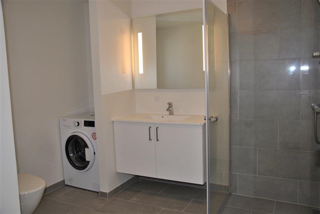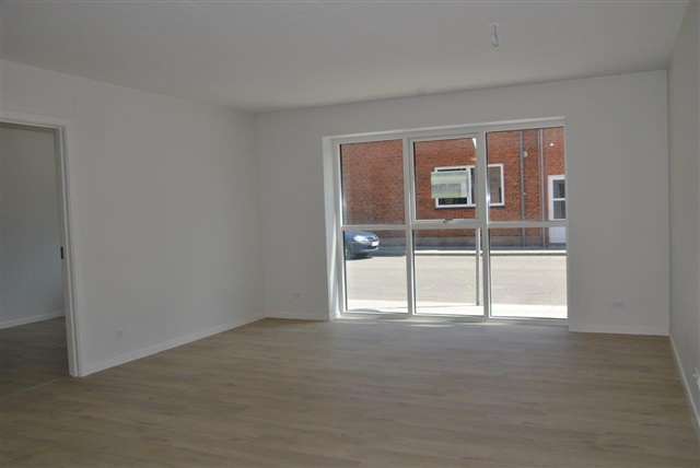 This inviting and thoughtfully designed three-room apartment is situated within a newly constructed building right in the center of Fjerritslev. Upon entering, you are greeted by a spacious hallway that leads into a modern bathroom featuring tiled surfaces, a separate shower area, and a washing machine.The open-plan kitchen and dining area seamlessly connect to the living room, creating a bright and contemporary space that suits both daily living and relaxing gatherings. The kitchen, equipped by HTH, includes a refrigerator/freezer, oven, cooktop, extractor fan, and dishwasher, offering full functionality.
