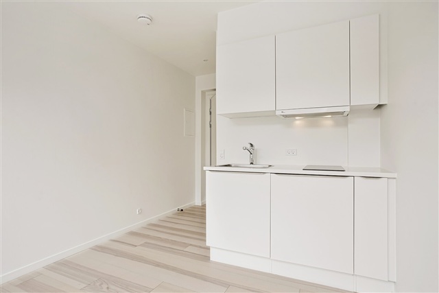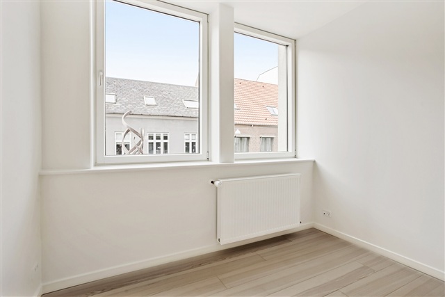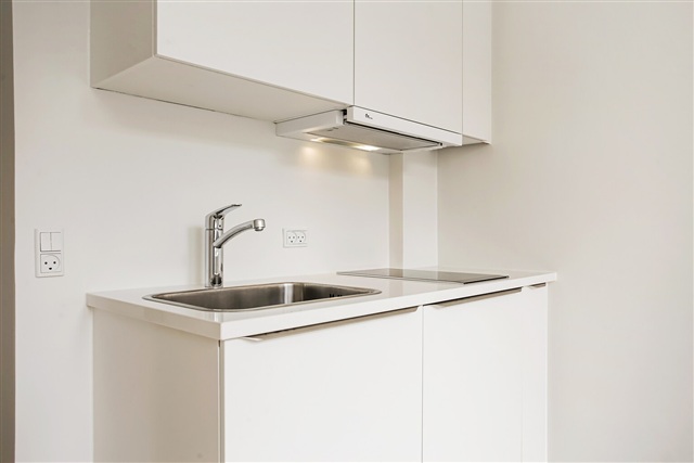 This recently renovated studio apartment is situated in the heart of Vejle, ready for immediate move-in. The unit features a bathroom outfitted with underfloor heating, a washing machine, recessed lighting, a wall-mounted toilet, and a pleasant shower area. The spacious main room is seamlessly connected to the kitchen, which is equipped with a ceramic stovetop, a fridge-freezer combination, and an extractor hood. Residents have access to a generously sized communal terrace. Additionally, parking spaces are available for rent near the building. Viewings can be arranged any day of the week; feel free to contact us to schedule a visit.