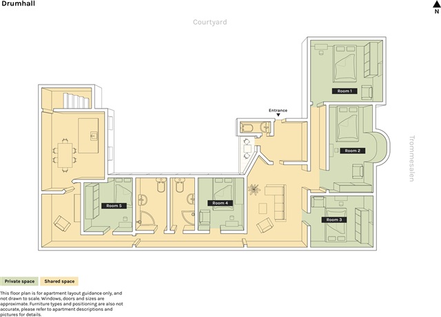 Situated on the fourth floor, this apartment comprises five generous rooms in total, with four designed to function as double bedrooms and one as a single bedroom. The residence features a large living area, an open-plan kitchen, and a comfortable library space ideal for unwinding. Additionally, the property includes two full bathrooms along with a separate guest toilet.