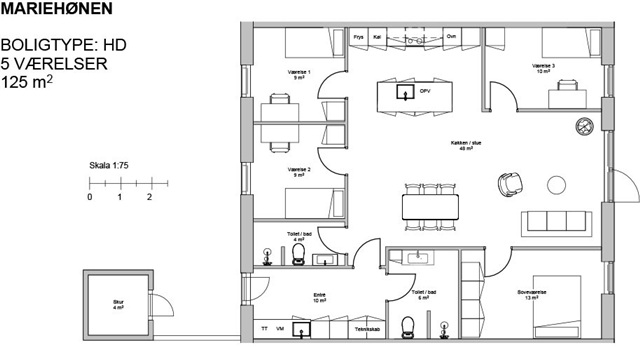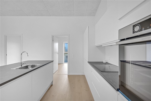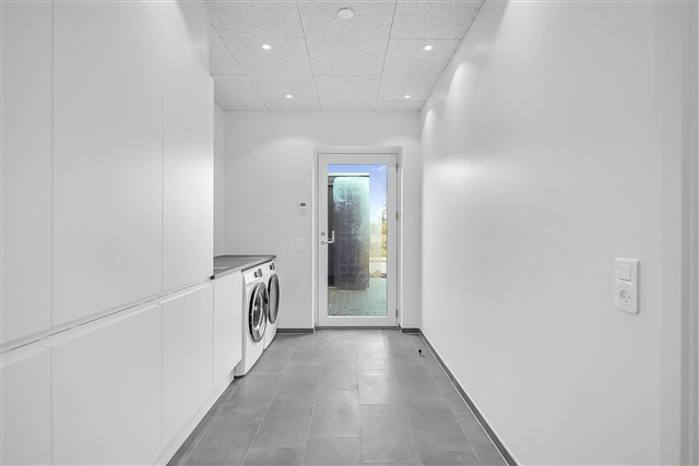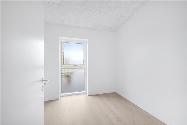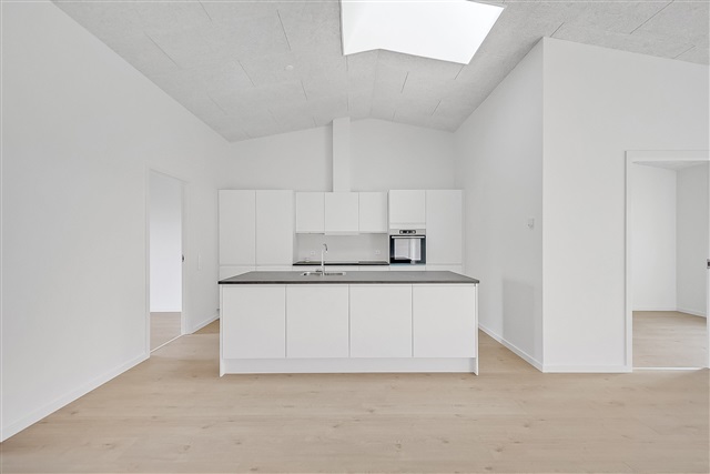 The residence features an entrance hall, a bathroom, and a stylish open-plan kitchen and dining area with generous ceiling height. In addition, the property includes four well-sized bedrooms. Outside, there is a spacious terrace facing south, accompanied by a garden.- Share-friendly