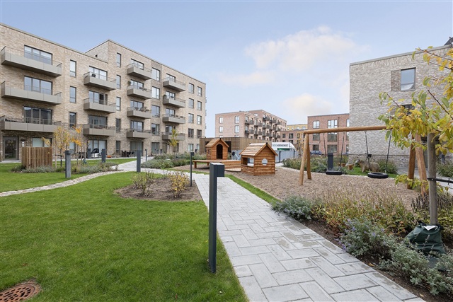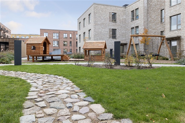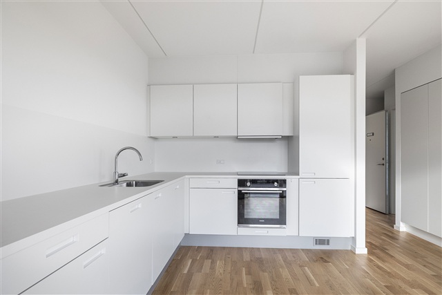 The development is designed as a block formation featuring private outdoor spaces, where two buildings together create an open block structure. The property includes 71 rental apartments ranging from two to five rooms, with sizes between 52 and 109 square meters. This variety accommodates individuals, couples, and larger families alike. The apartment itself is bright and well-laid-out, offering three bedrooms, an open-concept kitchen and living area, as well as a balcony. The spacious common area combines kitchen and living room in a seamless open plan, providing flexibility for everyday living and socializing. The layout includes a master bedroom plus two additional rooms suitable for children, a home office, or guests. Additionally, there is an entrance hall with storage options and a nicely finished bathroom. From the living room, access leads to a balcony that serves as a pleasant outdoor extension of the home.Within the complex, there is a cozy courtyard featuring communal seating areas and a playground designed for young children. Access to the underground parking is facilitated by ramps for both entering and exiting. Elevators are installed in all stairwells, providing direct access to the basement level. Bicycle parking spaces are allocated in the cellar, and each apartment comes with a locked storage room located in the heated basement. All apartments are equipped with intercom systems that include video cameras. Residents are allowed to keep one dog or one cat, but only with written permission from the landlord. Prospective tenants will undergo a credit check using their CPR number before rental approval. Being registered in RKI is not permitted for applicants wishing to rent a unit. Please note, the photographs provided do not depict the specific apartment available for rent.