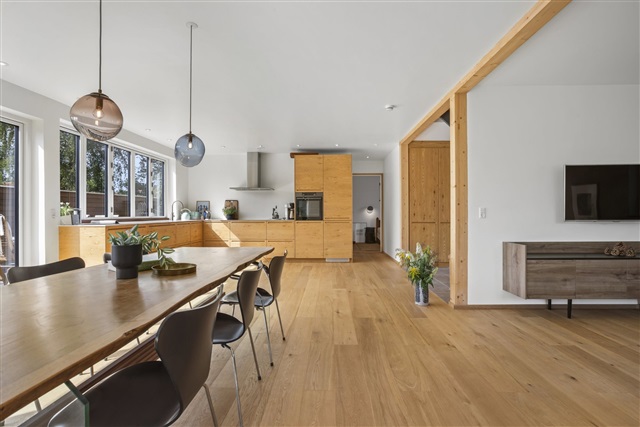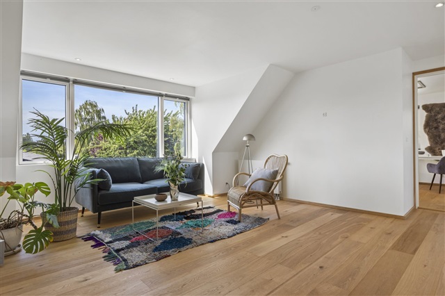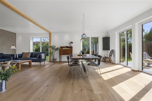 With 193 m2 and an open kitchen-dining room with lovely light from the house's 3 facades, 1 large bathroom and 1 bedroom on the ground floor.