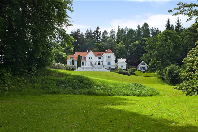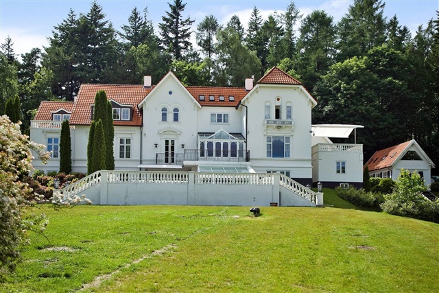 Nestled in the tranquil depths of the forest, this grand estate in Høje Sandbjerg offers a truly exceptional location. It is situated at the very end of a quiet cul-de-sac, elevated and completely secluded. Directly to the north, Rude Skov forest borders the property, while to the south, expansive views extend over a vast 29,301 m² park and far beyond into the horizon.The residence itself encompasses just over 1,000 m² of elegant living space, rich with exclusive and distinctive features throughout. Originally constructed in 1900, the building has undergone an extensive and costly renovation in recent years, preserving its stately character while integrating modern comforts. The generous interior space ensures ample room even for large families. Privacy is paramount here, supported by a gated entrance with a porter's lodge providing security. The approach to the home is impressively grand, with a long driveway winding through the parkland. Multiple terraces and sun decks surround the property, all designed to maximize the stunning views and sunlight. Additionally, the estate includes a 77 m² annex.