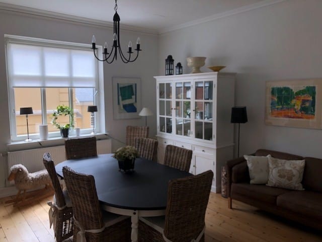 The apartment will be shown on Tuesday, March 10, 2026, at 3:00 PM. You are invited to attend the viewing. This spacious and recently renovated flat is situated in the heart of Nykøbing F and is available for rent. The layout includes an entrance hall, two large living rooms, a bedroom with an adjoining wardrobe, a modern kitchen, and a bathroom. Heating is provided through district heating. Water consumption is covered by the rent. There is the possibility to connect a washing machine within the apartment. Keeping pets is not allowed. A basement storage room is included with the rental. Additionally, there is a monthly fee of DKK 175 for cleaning the staircase. Please note that the apartment is handed over unfurnished.