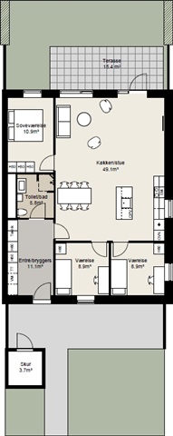 This bright and welcoming townhouse is situated in the charming Astrid Lindgren neighborhood, offering close proximity to daily conveniences such as kindergartens, shopping options, public transportation, and easy access to the highway. The home centers around a spacious kitchen and dining area where cooking and living spaces merge into one open-plan environment. The modern kitchen is equipped with high-quality appliances, including a dishwasher, and provides ample countertop and cabinet space, creating a practical and attractive setting.Within this area, there is sufficient room for both a dining table and a lounge setup, while large windows fill the space with natural light all year round. From the kitchen and dining zone, direct access leads out to a terrace and garden, seamlessly blending indoor and outdoor living. The townhouse comprises a bright master bedroom featuring fitted wardrobes and two additional rooms with closets, suitable for use as children's rooms, an office, or guest bedrooms.