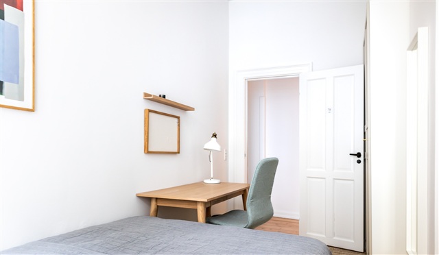 Refurbished entirely in 2022, this apartment features eight individual bedrooms, complemented by two communal bathrooms. At its core lies a spacious, contemporary dining kitchen, alongside a distinct living room area.Each bedroom is furnished with a premium-quality bed, complete with bedspread, duvet, and pillows. Additional amenities in the rooms include a bedside table equipped with a reading lamp, a desk paired with a chair and desk lamp, and ample storage solutions such as a wardrobe with hanging space and drawers. Under-bed storage boxes provide extra capacity for belongings. The rooms are further equipped with curtains, mirrors, laundry baskets, trash bins, rugs, and decorative elements to enhance the living experience.