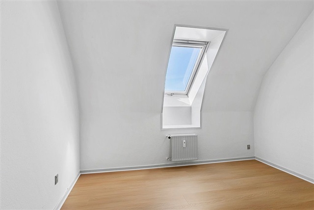 This bright and inviting apartment is situated right in the center of Randers, offering an excellent living option for singles, young couples, or students seeking a well-maintained home with a practical layout and a superb location. The residence features two distinct rooms that can easily serve as a bedroom alongside an office or guest room, providing versatile living arrangements. A spacious living area allows for varied furniture setups and creates a cozy ambiance.The kitchen is efficiently designed, boasting ample cabinet space for storage, while the bathroom is bright and includes both a toilet and a separate shower area. Large windows set into the slanted walls flood the space with natural light and present views over the rooftops of the city. Positioned within a calm building, the apartment is just a short walk from everything that Randers’ city center has to offer—cafés, shopping opportunities, public transport options, and nearby green spaces all within easy reach. This home combines charm, scenic views, and an ideal location. If interested, please get in touch to arrange a viewing.