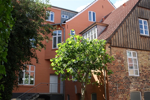 This bright and inviting three-room apartment, located at Skrænten 54 B, 1st floor, left side, spans 82 square meters. The living room and kitchen area feature pale pine wood flooring and are illuminated by large windows that allow ample natural light to flood the space. The kitchen is equipped with light-colored Invita cabinetry, complementing the bright atmosphere. The spacious bedroom also boasts pale pine floors and includes built-in wardrobes for convenient storage. A generously sized bathroom provides enough room to accommodate a washing machine and dryer. Residents have access to a communal courtyard garden as well as parking facilities nearby.