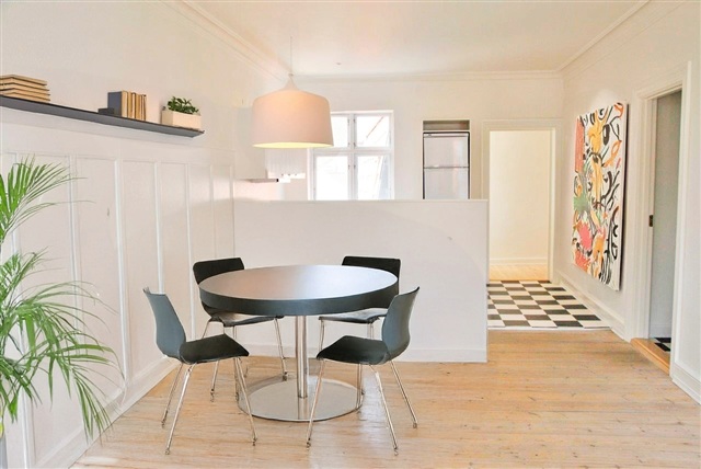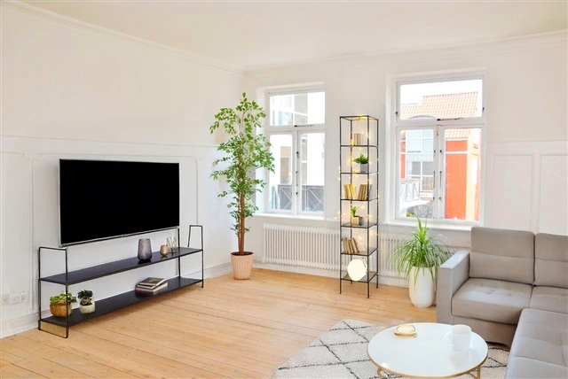 This cozy two-room apartment is situated in a central location right in the heart of Viborg. Upon entering, you are greeted by an entryway leading to a bathroom equipped with a shower and the option to install a personal washing machine. The kitchen and living area are merged into one expansive open space, designed to offer a bright and airy environment. The living room features attractive hardwood floors and beautiful original wood paneling, adding a distinctive character and charm to the residence.Residents may apply for permission to keep small pets in the apartment.