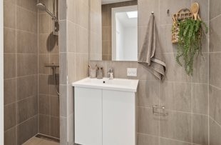 The bathrooms are designed with a modern and minimalist style, and adjustable underfloor heating is installed in each room, enabling precise temperature control throughout the entire home. Additionally, residents benefit from free parking with available charging facilities nearby.