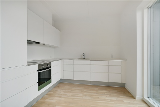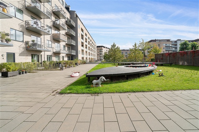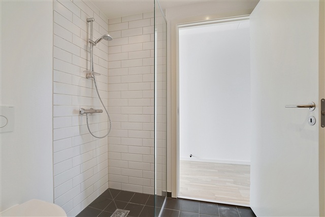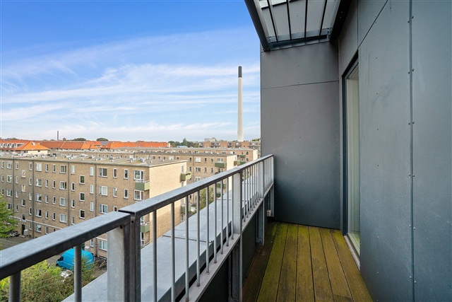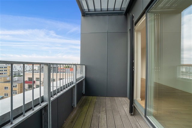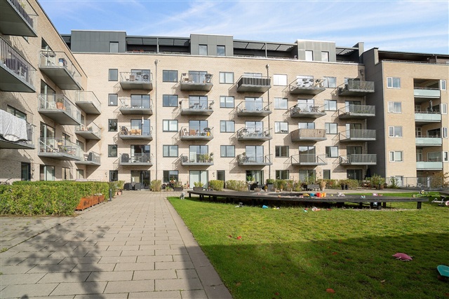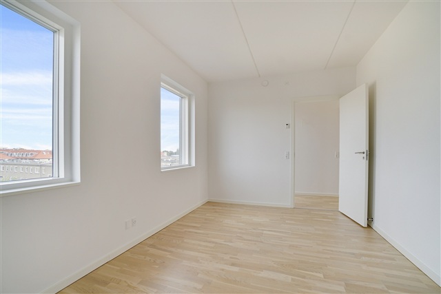 Situated at the intersection of Bygmestervej and Bisiddervej in the heart of Copenhagen's Northwest district, this relatively new and contemporary building complex offers a range of appealing features. The property includes a large communal green courtyard, an extensive shared rooftop terrace, an elevator, bicycle storage facilities in the basement, and the option to rent a parking space also located underground.The structure spans five floors and houses a total of 58 rental apartments. These units range in size from 69 to 108 square meters and come equipped with underfloor heating throughout. They benefit from ample natural light, bright oak flooring, and white Svane brand kitchens. Each apartment is also allocated a storage room, which can be found either in the basement or within the apartment itself.