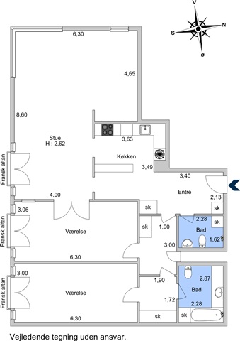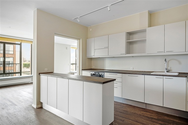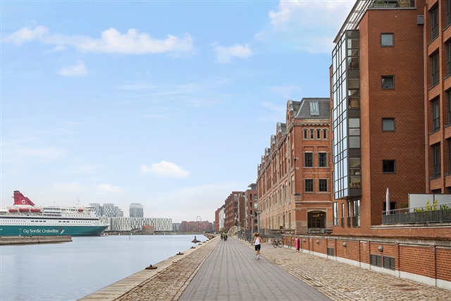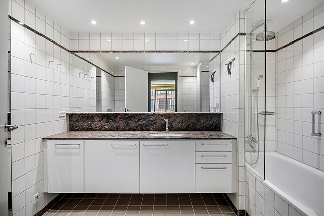 With an excellent location in a property from 1997, this apartment is now offered for rent for up to 4 years. Water view, lots of light, peace and idyll. The apartment is located on the 1st floor. From the moment you enter the apartment, there is a view of the water from all rooms. The apartment contains: entrance hall with a long hallway. Access to one of the apartment's bathrooms from the hallway. Large and bright living room with direct water view, open kitchen, dining room which can also be used as a bedroom as it can be closed off from the living room and there is an additional door to the room from the hallway to the master bedroom. The master bedroom has a bathroom with shower and bathtub and a combined washing machine and dryer. The apartment is located at the first row to the water.At the top of the property there is a large shared roof terrace with views over Copenhagen. There are tables and chairs here and plenty of opportunities to hold summer dinners or enjoy a quiet afternoon in the sun. Included in the rent is 1 parking space in the underground parking garage with an associated electric charging station and astoraget room. The binding period for the apartment is 24 months. utilities are not included. Not rented as a shared home.