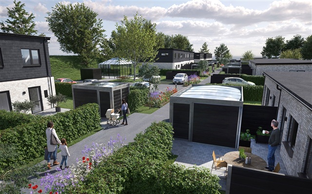You enter the entrance hall with built-in cabinets for the technical installations as well as a washing machine and dryer. From here you will also find the bathroom.From the entrance hall, you have access to the open and bright family room with kitchen, a good dining area with large floor-to-ceiling windows and the possibility of a cozy sofa corner. From the living room there is access to the large back terrace. Furthermore, there is a large bedroom with three built-in wardrobes and a larger extra room.