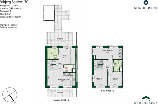 Top-floor townhouse with access via a spacious entrance hall with plenty of space for storing outerwear, footwear, etc. From here you will find the house's bright and extremely well-appointed family room with an angled kitchen, plenty of space for a large dining table and a separate living room in open connection. The family room has plenty of natural light via several large windows to the floor and access to both the front and back terraces. The ground floor also has a toilet with washing machine and dryer. The first floor contains a large bedroom with built-in floor-to-ceiling closet, two larger bedrooms and a bathroom with a large separate shower.