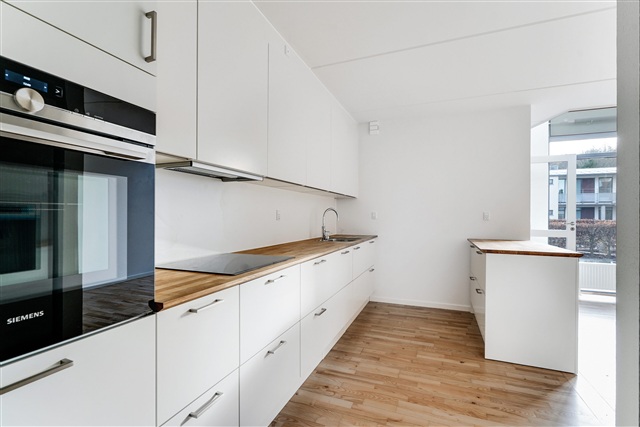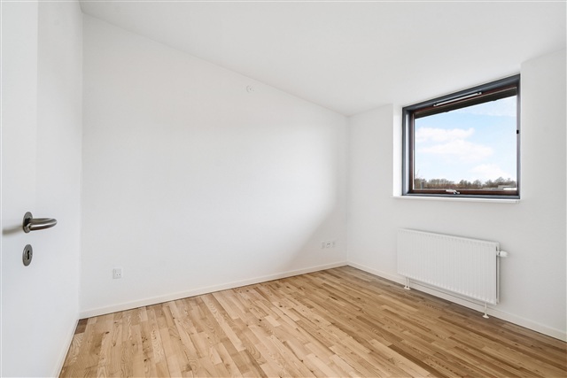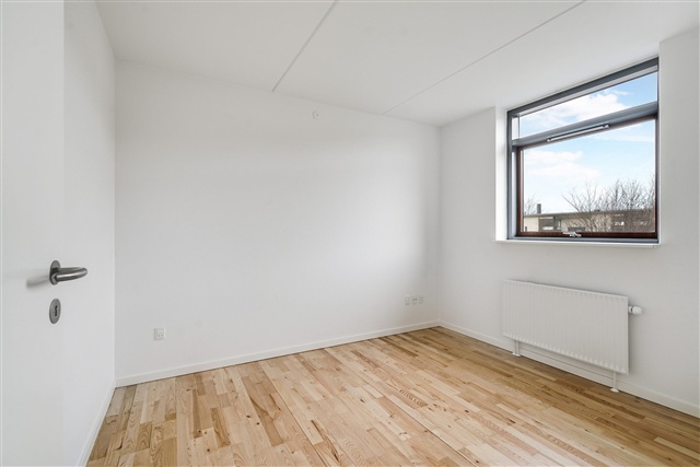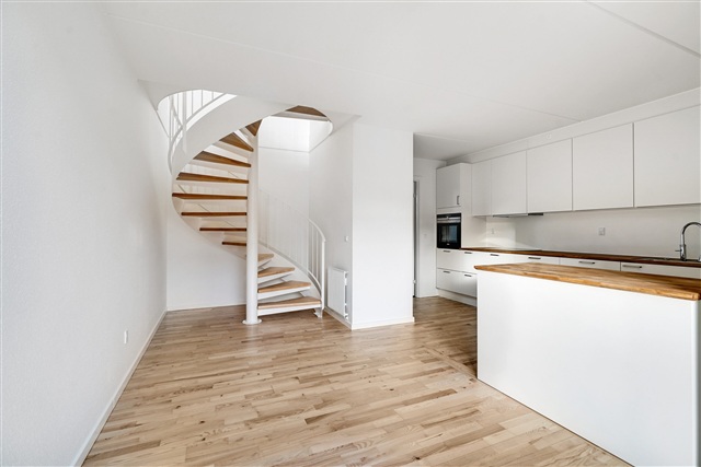 This beautiful apartment is designed over two floors and is situated close to both forest and water in the highly sought-after area of Højbjerg, surrounded by scenic natural landscapes. The layout resembles that of a small townhouse, offering a well-planned, contemporary living space.On the ground floor, you enter through a compact hallway leading to a stylish and practical Invita kitchen equipped with all major appliances. Additionally, there is a bedroom and a neat bathroom that includes both a washing machine and a dryer. Upstairs, the kitchen and dining area connect to a bright living room featuring high ceilings and expansive windows that provide abundant natural light. From the living room, you can step out onto a pleasant balcony. This upper level also contains the master bedroom and a well-maintained bathroom.