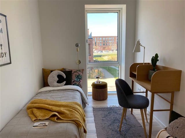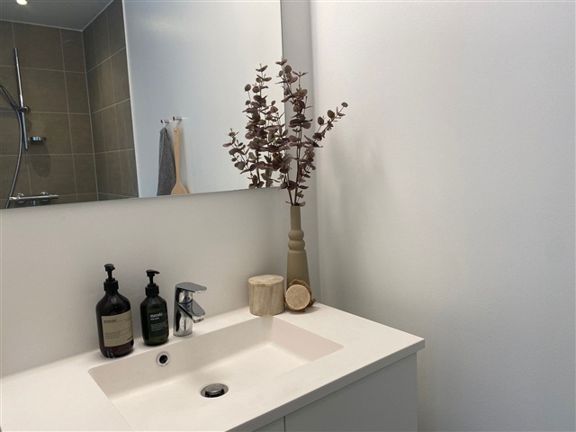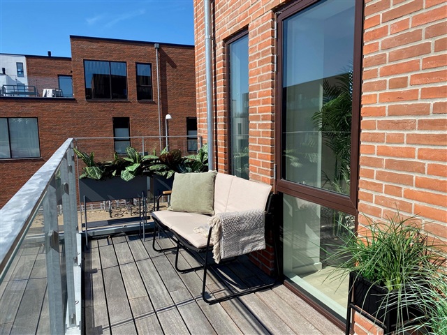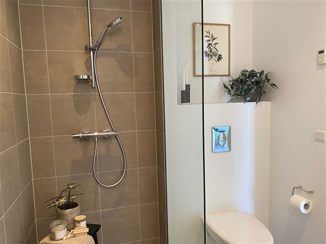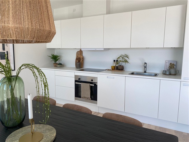 Experience comfortable living in this spacious three-room apartment featuring a terrace. Upon entering, you are greeted by a generously sized hallway offering ample storage for coats, shoes, and more. The kitchen is newly installed from Svane and comes fully equipped with a complete set of modern appliances. The open-plan living room, kitchen, and dining area provide a vast space that opens directly onto the terrace. The bathroom is elegantly designed, including a shower cabin as well as a combined washer and dryer. There are two large bedrooms, each furnished with built-in wardrobes, and an additional storage room within the apartment that can alternatively serve as a walk-in closet.Situated in the contemporary district known as NærHeden, the residence benefits from a scenic location close to lakes and recreational areas adjacent to the Hedeland Nature Park. Despite the tranquil setting, it is only a 20-minute train journey to Copenhagen Central Station and 10 minutes to Roskilde. The new suburb is planned to comprise 3,000 homes alongside its own school and shopping facilities. In NærHeden, essential services including shops, schools, daycare centers, leisure activities, and natural surroundings are conveniently close. Many key points in the area are accessible via Loopet, a green corridor for pedestrians and cyclists that connects NærHeden to Hedehusene, passing underneath the railway through underpasses. This pathway is designed with green urban spaces and various activity zones. The neighborhood exemplifies modern living by blending the urban qualities of the capital with the character of Hedehusene, featuring closely built structures, intimate public spaces, small private yards, and shared amenities.