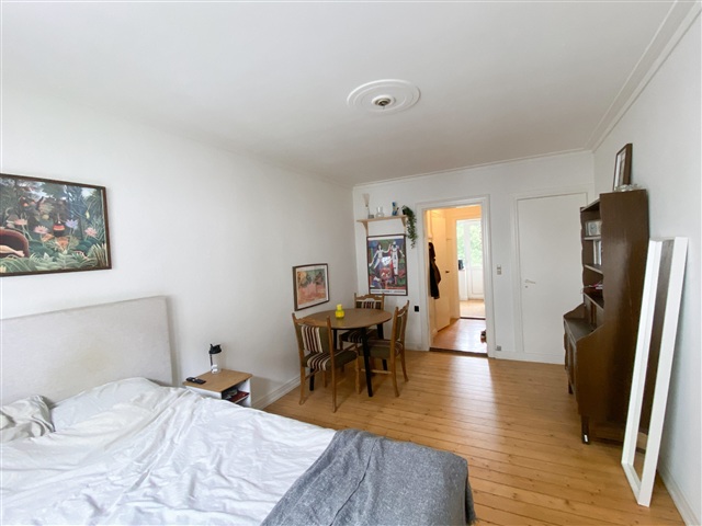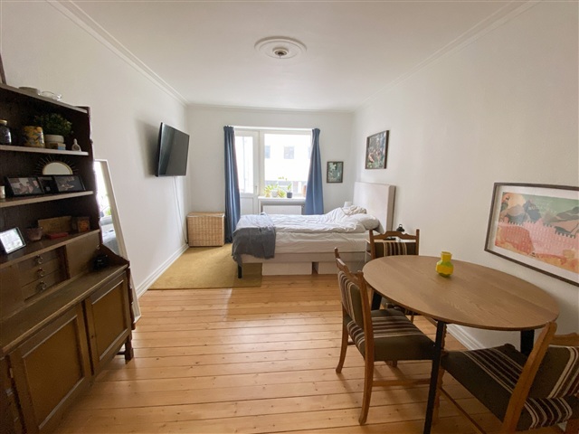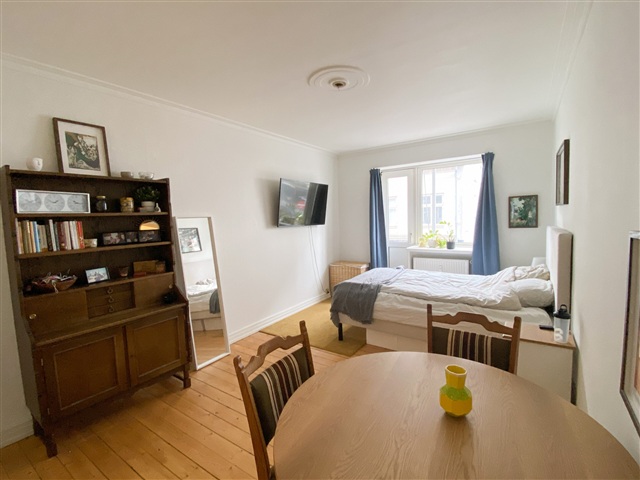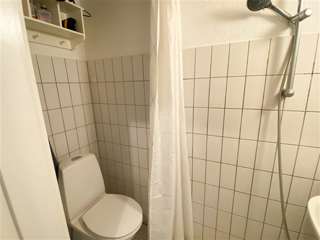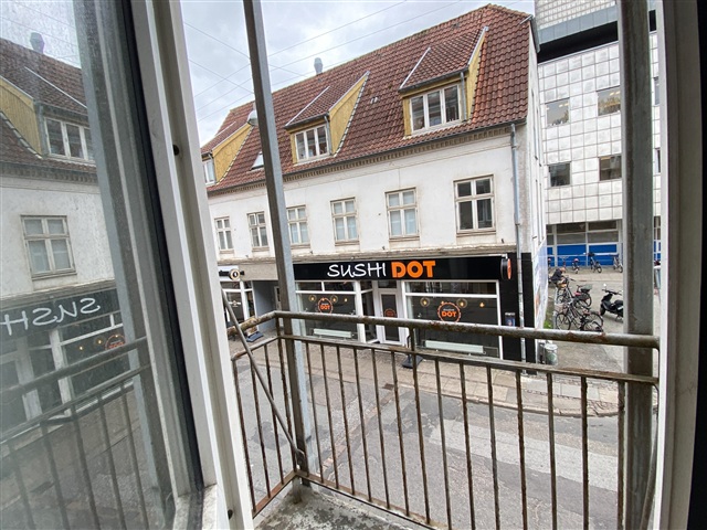 This apartment features a compact entrance area that leads directly to the bathroom. The shower is positioned centrally, effectively dividing the space. Moving on, the kitchen is presented in bright white tones and provides access to a small balcony. Lastly, the unit's main room offers a generous space with attractive flooring, allowing for versatile furnishing options. From here, there is also entry to another small balcony.Located in Aalborg, a city often nicknamed the "Paris of the North," the vibrant culture and entertainment options are especially concentrated in the city center. Aalborg Theater offers a variety of performances catering to diverse tastes, while the Kennedy Arcade features the latest blockbuster films. Additionally, art house cinema screenings can be enjoyed at Biffen Nordkraft. The mix of cultural experiences combined with the unique character of the city center's facades enriches daily life. Living in the heart of Aalborg ensures you never miss out on events or a casual drink with friends in Jomfru Ane Gade. The area is well connected to public transportation, providing easy travel options in all directions-east, west, and south.