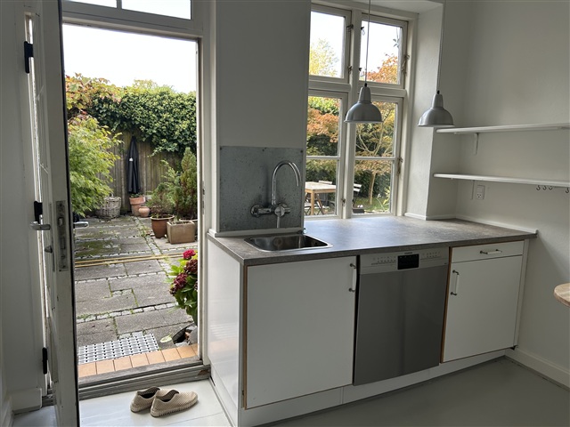 In a small property, Vesterbrokvarteret Odense c, a 2-room apartment on the ground floor is for rent with direct access to a closed, cozy courtyard.It consists of a kitchen, bathroom, living room and bedroom. There is a dishwasher and access to a shared washing machine in the basement.