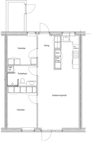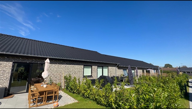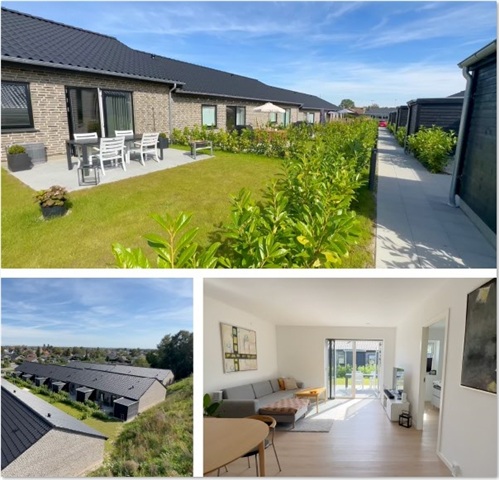 This newly constructed, energy-efficient single-story townhouse features three rooms and is situated in an ideal location. Nestled on Bryggersvej in Helsinge, the residence offers a peaceful setting within easy reach of the sea, town amenities, and beautiful natural surroundings. Additionally, the homes are conveniently positioned near excellent sports facilities, shopping options, schools, and daycare centers, all accessible through well-maintained walking paths.The interior includes a bright kitchen and dining area with an open layout that flows seamlessly into the living room, equipped with a kitchen from Invita. There is a bathroom featuring a laundry column and two spacious bedrooms. Outside, each home benefits from a manageable, south-facing garden with a terrace, complemented by an additional smaller terrace on the opposite side of the house. A small tool shed is also part of the property.