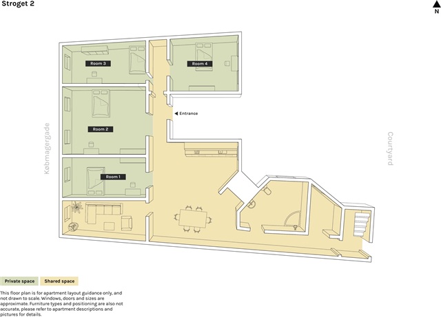 Built in 1852, this apartment is situated in a central location and comprises four individual rooms that together create a warm and inviting living space. Among these rooms, three overlook the pedestrian street, while the fourth faces the courtyard, offering varied views. The kitchen is designed with an open layout that seamlessly connects to the dining area, making it an ideal spot for gatherings, whether preparing meals, playing board games, or enjoying a glass of wine. A comfortable living room, referred to as a "cozy corner area," looks out onto the pedestrian street. Additionally, the apartment includes a dedicated laundry space at the rear and a spacious bathroom that provides ample room for movement.