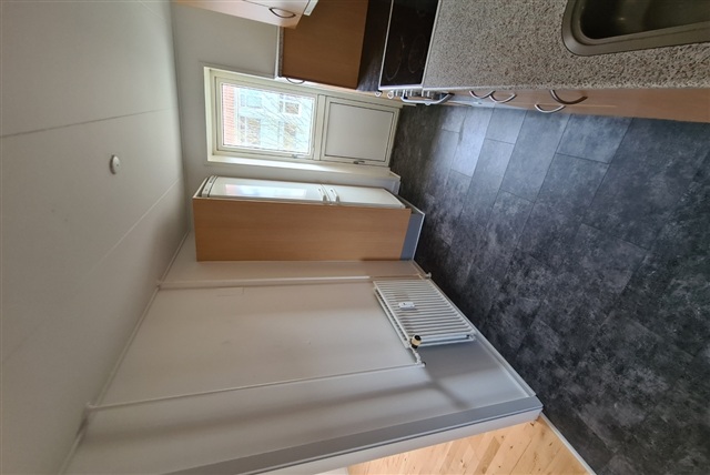 This bright apartment features access to a balcony from both the kitchen and the bathroom. The entire unit has been beautifully renovated, showcasing lacquered beech parquet flooring throughout. The kitchen is well-lit and equipped with beech cabinetry. The bathroom includes white tiled walls and a light vinyl floor. Additionally, the entrance hall and bedroom provide generous closet space. Pets are not permitted in the property.