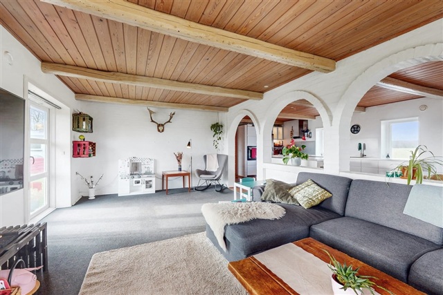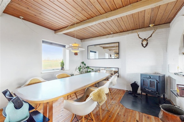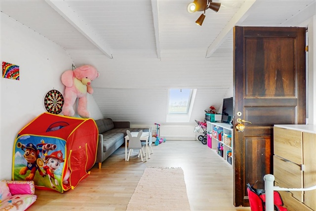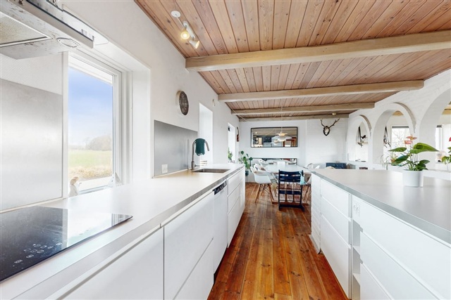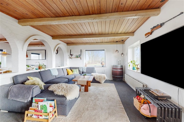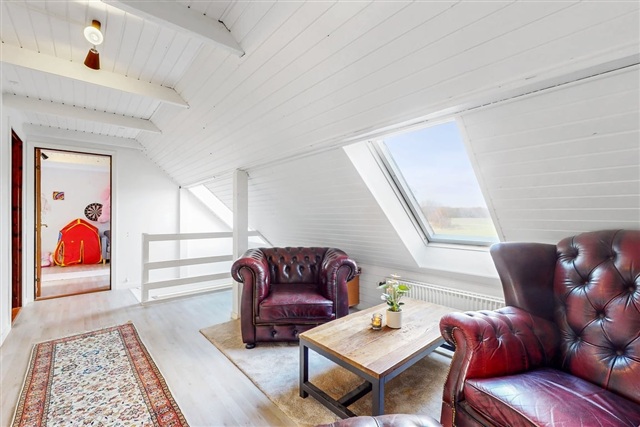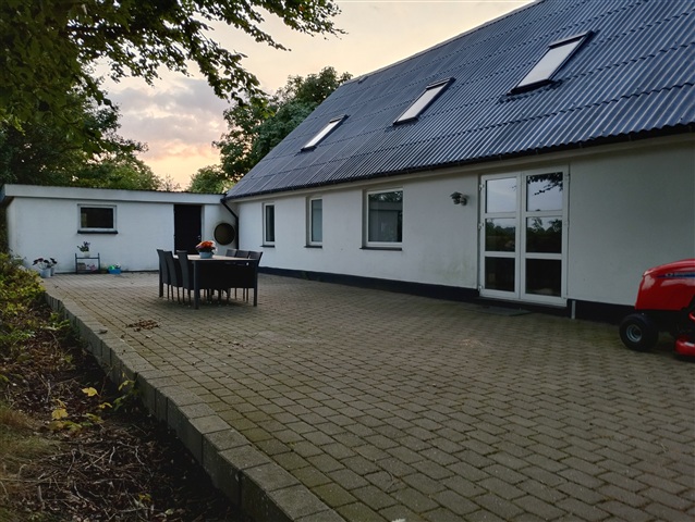 A larger and yet still cozy country house, which has kept up with the times in terms of consumption and indoor climate while preserving the old charming architecture. The home is perfect for both small and large families five rooms and two toilets which are distributed over both halls. The 1st floor has air conditioning/heat pump, and the living room of course has a large traditional wood-burning stove for a cozy winter day. A quite large kitchen-dining room half divided with round walls and vaults.120m2 terrace leading up to a large garden which is fenced all the way around.