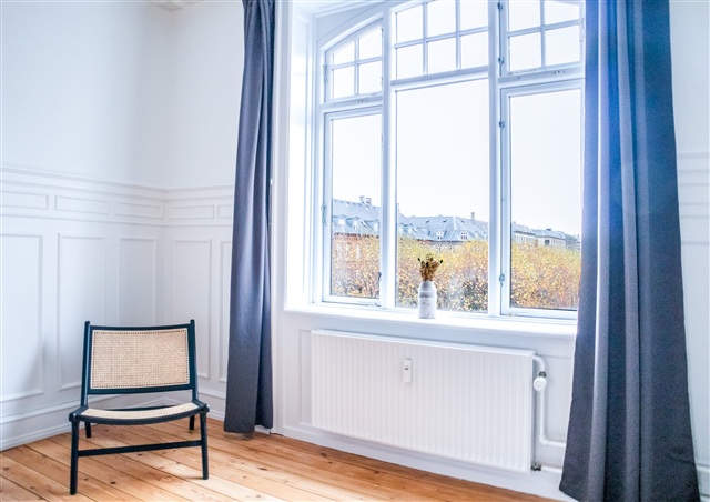 Renovated to a high standard in 2022, this charming apartment still preserves a number of traditional elements, including lofty ceilings, elegant stucco details, and original tall wooden panels adorning some of the walls. The layout comprises four bedrooms, a spacious dining kitchen, and a generous living room that offers unobstructed views of the renowned Aksel Møllers Have. The bathroom is well-appointed, featuring a separate shower niche alongside a combined washer and dryer unit.Upon entering, you step into a hallway that provides direct access to all four bedrooms, the bathroom, the kitchen, and the living room. The bedrooms come furnished with quality beds complete with bedspreads, duvets, and pillows, paired with bedside tables equipped with reading lamps. Workspaces include desks furnished with chairs and desk lamps, while storage solutions feature wardrobes with both drawers and hanging areas, as well as storage boxes tucked beneath the beds. Additional items such as curtains, mirrors, laundry baskets, trash cans, rugs, and various decorations are also included, though not all are depicted in the photos.