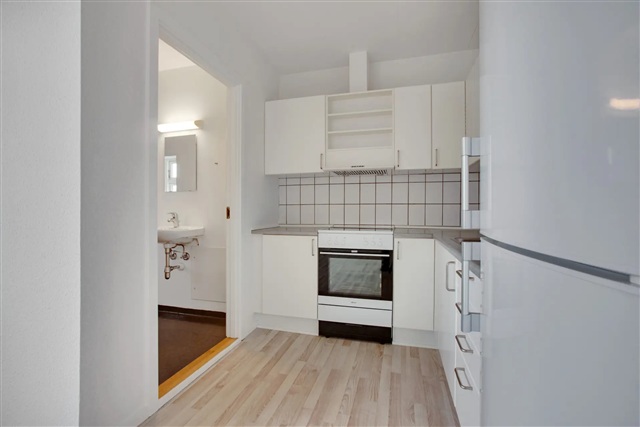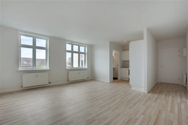 This charming two-room apartment is situated on the first floor of a prominent building in Vamdrup. The layout includes a living room and kitchen arranged in an L-shape, a bedroom equipped with a closet, and a bathroom.Residents have access to a bike shed, a communal garden, and a storage space in the basement. There is also an option to register for use of the shared laundry facilities at a cost of 225 DKK per month.