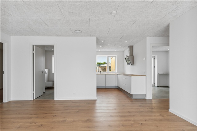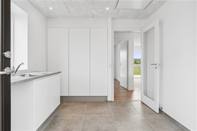 Located near Skovvangen, the property offers convenient access to schools, childcare facilities, sports amenities, shopping opportunities, and recreational spaces. The development is situated adjacent to the Lundergård forest area. The town center of Hjørring lies 2.5 kilometers away, with easy connections to the motorway and train station within a short distance.