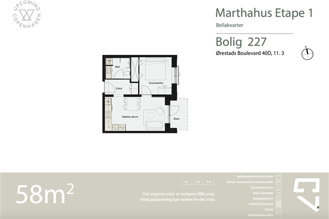 Welcome to The area in BellakvarterThis beautiful 2-room apartment offers a smart and efficient layout. You enter into a practical hallway with space for shoes and outerwear. From here, you have access to the apartment’s spacious bedroom, the modern bathroom with washer-dryer combo and a separate shower, as well as the bright and open kitchen/living area. The kitchen is equipped with built-in appliances, including a dishwasher, and flows naturally into the living space, which has room for both dining and a cozy sofa area. From here, you step out onto your private balcony—an extension of your living space in the fresh air.Large and Open CourtyardThe area is built around a courtyard in a classic Copenhagen-inspired block structure. The building is slightly set back from the urban street, with facades made from hand-crafted bricks in warm red tones that gradually lighten toward the sky, guiding daylight down into the courtyard. The courtyard itself features cozy sitting areas, small play zones, and a public path from east to west, marked with special paving. Trees and perennials in varying heights and colors add to the charm.Close to Metro, Shopping, and CultureJust a few minutes' walk from your door, you'll find Metro access, shops, cafés, restaurants, Byparken, and Ørestads Streethal—offering indoor sports, climbing, play areas, and an outdoor fitness park. Bellakvarter is home to Bella Center Copenhagen, which hosts popular fairs including design events and the annual LEGO World. Nearby, the iconic AC Hotel Bella Sky boasts a rooftop restaurant with stunning city views.Additional Info- Pets: Allowed upon application- Lease: Minimum 12 months. After that, 3 months' notice.Please note that photos may not be from the specific apartment; layouts and views may vary.