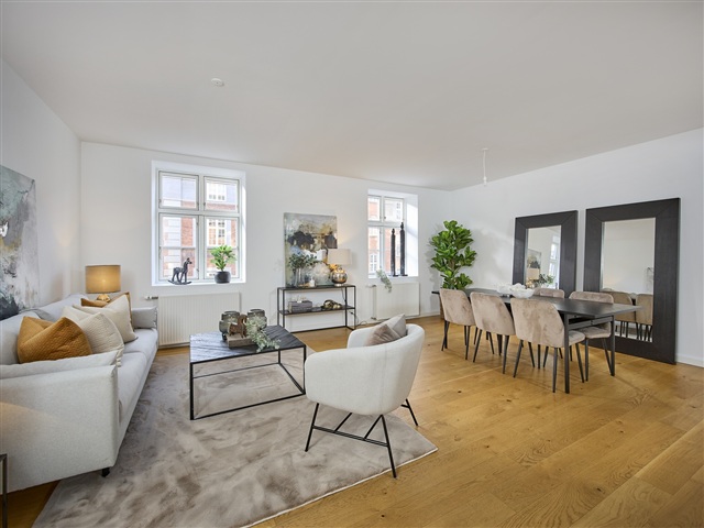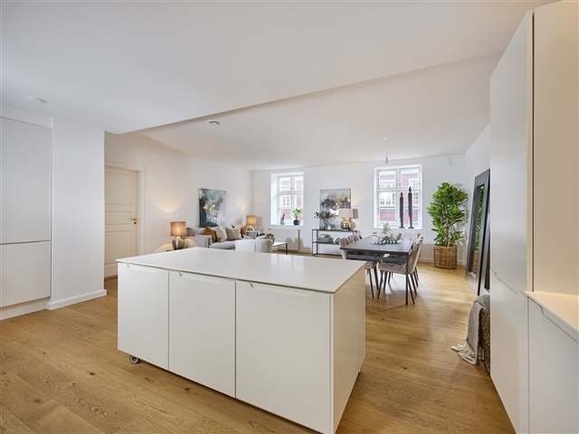 The building located on Anker Heegaards Gade is a traditional Copenhagen structure dating back to 1908, ideally situated in the sought-after district between Vesterbro and the Inner City. Its historical facade combined with refurbished stairwells offers a timeless and welcoming atmosphere.Within this property, you will find upscale owner-occupied apartments that have been carefully restored with great respect for original architectural elements. These residences feature high ceilings, bright oak plank floors, expansive windows, and modern amenities such as an elevator and fully equipped kitchen appliances. Several units include private balconies, emphasizing both comfort and practicality. Spacious bathrooms, laundry stacks, open-plan kitchens with movable islands, and Quookers are standard highlights. The building is heated via district heating and is equipped with fast internet connections. Although there is no dedicated parking on site, the location is highly convenient for car-free living, with the Central Station, metro, and buses all within easy walking distance.