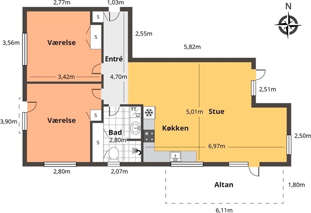 The 94 m2 apartment is located in Promenadebyen by the Odense harbor canal, close to the harbor bath, the station and close to the city center.The apartment has 2 large bright rooms, a large kitchen and living room in one, a bathroom with shower, and a terrace with a view of the forest and the city.
