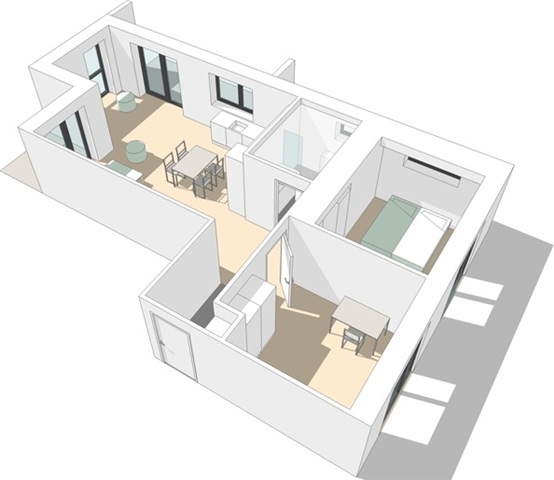 The 2 rooms are furnished with cupboards, so this apartment can be used as a shared apartment or for a small family, or between roommates.