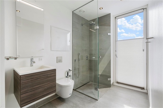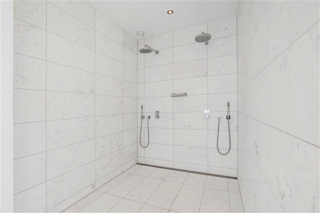 This exceptional penthouse occupies the top floor and offers a prime central location with stunning panoramic views over Copenhagen. Boasting 192 square meters of living area complemented by an expansive 130 square meter roof terrace, the residence features high-end finishes, a fully integrated air conditioning system, and numerous additional luxuries. Upon arrival, you step directly out of the elevator into the apartment, where an entrance hallway provides access throughout the home.Turning right from the entrance, you encounter a spacious bedroom that includes built-in wardrobes, an en suite bathroom, and direct access to a terrace. Further along this corridor lies one of the two generous roof terraces, offering ample room to enjoy the spectacular vistas. Moving left from the elevator, there is a guest bathroom, an additional bedroom, and a sizable master suite furnished with a walk-in closet and a large bathroom equipped with a freestanding bathtub, dual sinks, and a double shower.