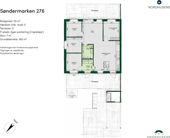 Ready-to-move-in home in quality materials - modern comfort and thoughtful detailsWelcome to this welcoming home built with solid materials and a focus on both aesthetics and functionality. The home features an open and bright kitchen/living room with wood concrete ceilings with insulation to ensure pleasant acoustics. The other rooms also have beautiful wood concrete ceilings that create a calm and natural look.The walls are painted in a timeless off-white shade that supports the bright and modern style. The floors in the kitchen/family room, living room and bedrooms are covered with elegant Krono Swiss laminate in white oak look, while the hallway, utility room and bathrooms are finished with gray 60x60 cm tiles.Inside, the home has white cell doors without doorsteps, neat white painted skirting boards and smooth window sills. The bathroom is equipped with glass shower walls, wall-hung Ifö Cera toilets with soft-close seats and stylish Hans Grohe fittings. In the shower area there is a practical line drain.The kitchen is supplied by HTH and follows the modern line of the home - both practical and stylish. Underfloor heating with wireless control has been installed throughout the house, ensuring optimal comfort all year round.Outdoors, the home features two frost-proof water taps, practical power outlets at both the terrace and entrance, as well as a prepared installation for an electric car charging station. The shed is equipped with power and a switch.With a well-thought-out floor plan, quality materials and modern facilities, you get a home ready to move into, where both everyday life and leisure can be enjoyed to the fullest.