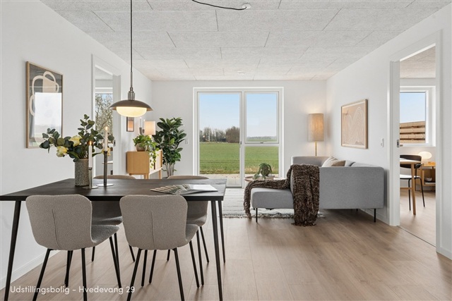 Take a virtual tour of our 4-room show home spanning 85 m² through the video below. This residence is characterized by brightness, simplicity, and surrounding greenery. The modern living space measures 75 m² and combines practicality with a welcoming atmosphere. Every square meter is thoughtfully utilized, offering a home suitable for both tranquil daily living and enjoyable moments with visitors.At the core of the apartment lies a spacious kitchen and living area featuring an open-concept layout. There is ample room for a dining table and a seating area, making it an ideal spot to gather family and friends. Expansive windows flood the space with natural light, creating an airy environment that blurs the line between indoors and outdoors. The main bedroom is designed to accommodate both a double bed and built-in wardrobes, while the generously sized bathroom includes modern fixtures and a washing machine and dryer setup. Upon entering, a welcoming foyer guides you further into the dwelling, and conveniently located next to the kitchen, a storage room offers excellent space for keeping household items.