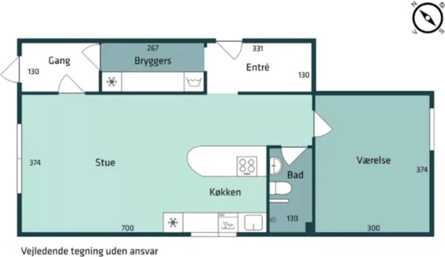 Large two-bedroom apartment with large kitchen/living room, utility room, hallway, newer bathroom and lovely large bedroom. There is a private garden with the rental, which is beautifully located and is undisturbed by curious neighbors.Located in peaceful surroundings at the bottom of Teglgårdsvej close to beautiful nature and trains to Copenhagen within a short distance.