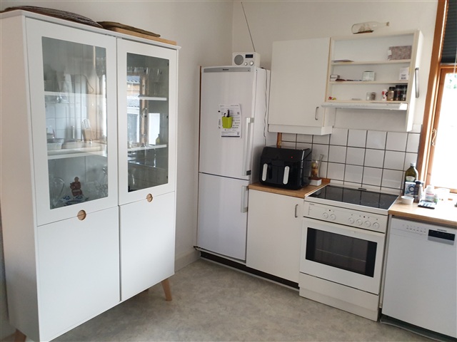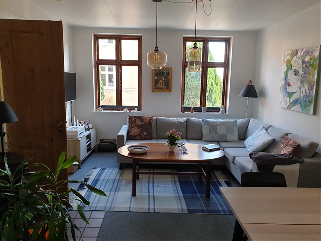 For rent to a quiet tenant/quiet couple. High ground floor apartment. Furnished with kitchen/dining room with wood-burning stove, dishwasher, stove and fridge/freezer. Bedroom with wardrobe, Bathroom with shower and washing machine. Entrance. Own storage room in the yard with space for bicycles etc.The yard and garden are shared with the owner on the 1st floor and the tenant in the basement. Covered terrace. Centrally located in relation to shopping, public transport, fitness, educational institutions, Svendborg Hospital and Svendborg's cozy cafes are 5-10 minutes walk from the apartment.