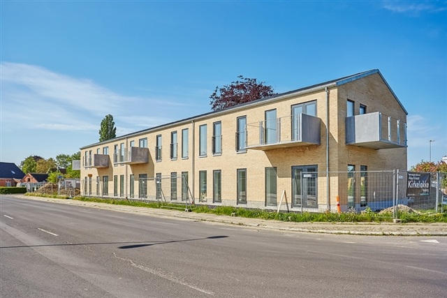 The housing association Fyn, department 54, offers attractive family residences situated in the heart of Ørbæk, approximately a 30-minute journey from Odense.These homes, built in 2016, are spacious and designed with families in mind. They come in two, three, or four-room layouts and range in size from 86 to 114 square meters. Featuring modern architectural elements, the apartments have high ceilings that create an airy atmosphere. Living rooms benefit from ample natural light and are floored with light wood. Each unit includes an open kitchen equipped with a refrigerator-freezer, stove, and extractor fan. Bathrooms showcase bright wall surfaces contrasted by dark floor tiles and matching tiles in the shower area. Provisions have been made for installing a dishwasher, washing machine, and dryer. Ground floor units boast private terraces, while those on the first floor include balconies. Additionally, every apartment has access to a cellar storage room. Residents can rent a shared community room located in the basement, and there is communal parking available near the residences.