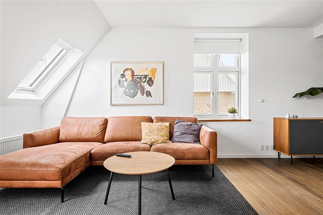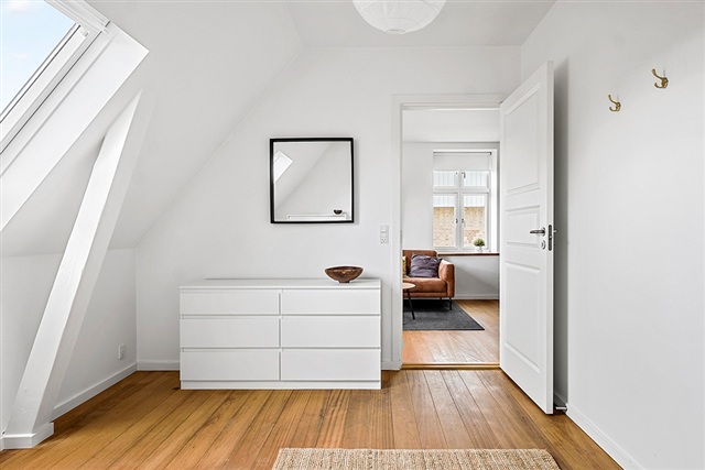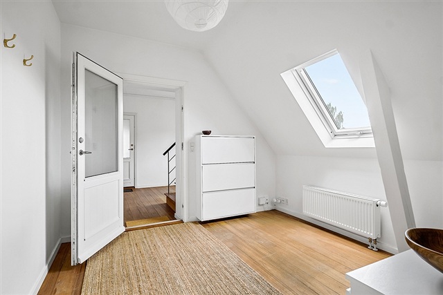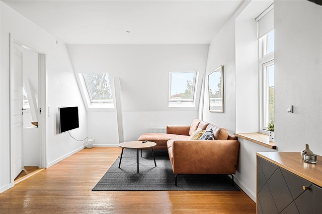 Cozy and beautifully furnished apartment centrally located in Hillerød close to the city's cozy streets, shopping, transport and green areas.The apartment is located in a nice and well-maintained villa.You arrive by the beautiful staircase to a large and spacious entrance hall from which you go directly into the apartment's large open living room which is in open connection with the dining area and newer modern kitchen with all appliances. Here are two good bedrooms, one room with built-in wardrobes and from the second bedroom there is access to the apartment's large cozy balcony.In addition, there is a nice and larger bathroom with washing machine and dryer.One private parking and a private shed for storage is included.Utility costs are not included in the monthly rent.Not rented out as a shared home.