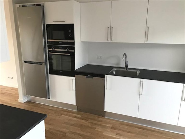 Flintagergårdvej is located in a quiet and established residential area in Bellinge – an attractive district in the southwestern part of Odense. Here you are close to both nature and everyday necessities. There is a short distance to shopping opportunities, which can be reached within a few minutes' walk, and the area is well connected by public transport, so you can easily get to and from the city center. Bellinge also offers green surroundings and open fields, and right next to Flintagergårdvej there is a large common open space – a neighborhood park – which creates air and life between the homes.This bright and inviting two-story townhouse offers a pleasant atmosphere and modern comfort with underfloor heating throughout the home. On the ground floor you will find an entrance hall and a practical utility room with washer/dryer. The open kitchen-dining room has all white goods and a staircase leading up to the first floor.