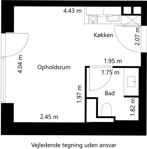 This modern 1-bedroom apartment offers a nice living room in connection with a small kitchen, which is equipped with a 2-zone hob and a fridge with freezer compartment and extractor hood. In addition, there is a private bathroom with a separate shower and a toilet. The bathroom appears new and modern, and with good storage space.